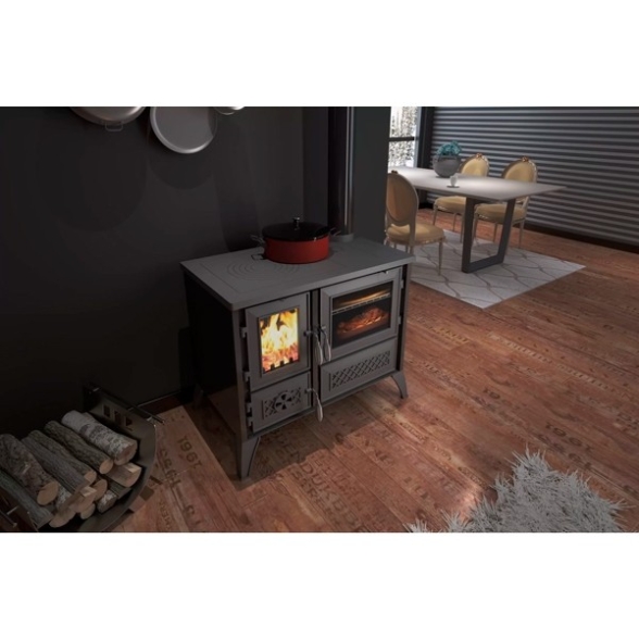 Riscopri il piacere del riscaldamento naturale a legna con la cucina a legna tradizionale Lisa e lasciati trasportare dallo scoppiettio rilassante della legna e dallo spettacolo romantico della fiamma, con i suoi colori ed i suoi movimenti.