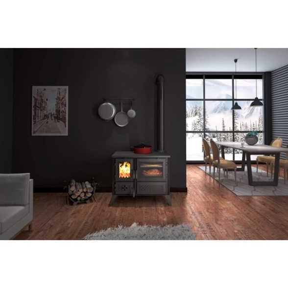 Cucina A Legna Tradizionale In Acciaio E Ghisa 9 kW Lisa Nera Ecodesign 4 Stelle